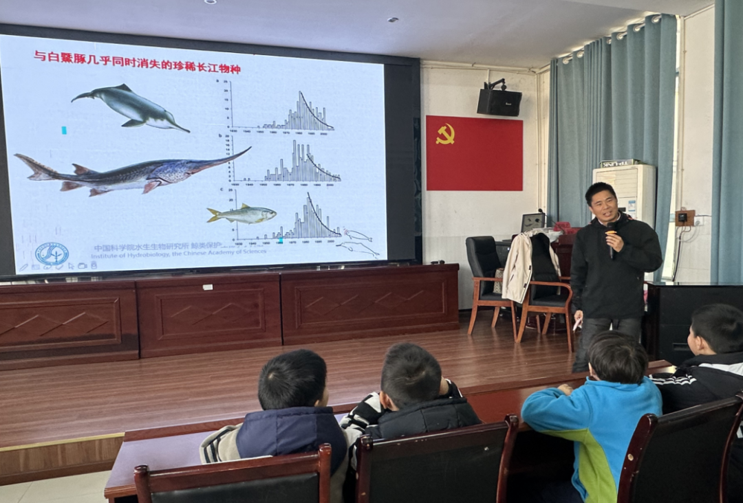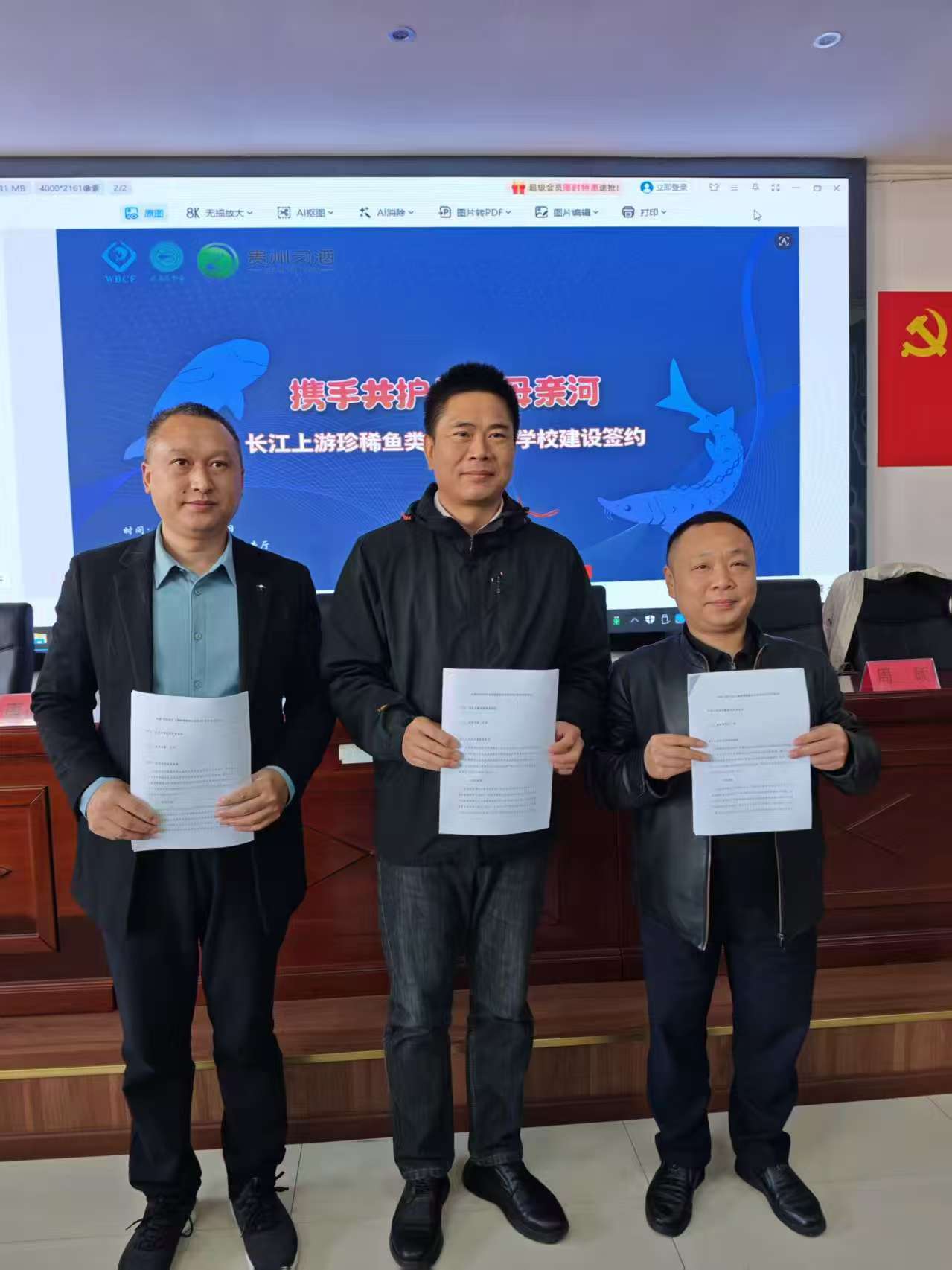 During the signing ceremony, the Wuhan Baiji Conservation Foundation (WBCF) entered into a formal partnership with the Chishui No. 2 Primary School and the Chishui Municipal Bureau of Agriculture and Rural Affairs. Dr. HAO Yujiang, head of the IHB Yangtze Finless Porpoise Breeding and Research Center and deputy secretary-general of the WBCF, delivered a keynote science lecture.
