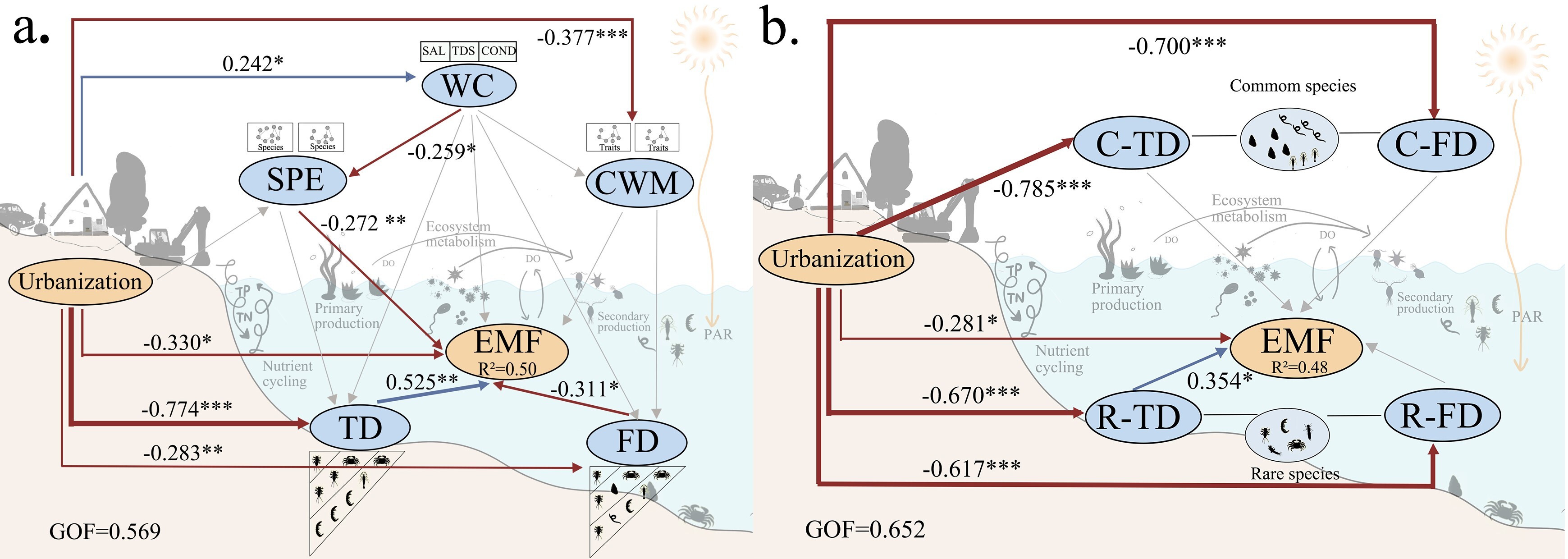 However, while the positive link between biodiversity and EMF is well-documented in controlled experiments, significant knowledge gaps remain regarding how urbanization modulates EMF through biotic pathways in complex, highly human-impacted systems. The specific mechanisms by which urban stressors drive multifunctionality shifts in natural river networks have long remained elusive.